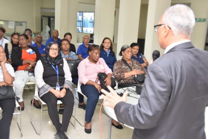 La capacitación fue desarrollada en el salón de conferencias de la institución y estuvo a cargo del facilitador de la DGJP, José Santos, quien explicó temas referentes a los Sistemas de Reparto Estatal y de Capitalización Individual, sus diferencias, beneficios y base legal. Asimismo, orientó sobre los requisitos y procedimientos para optar por una pensión por antigüedad en el servicio y por sobrevivencia.