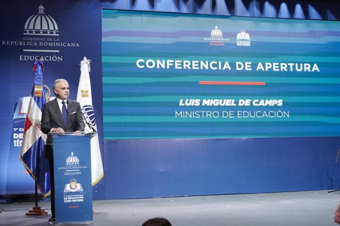 El ministro de Educación, Luis Miguel De Camps, aseguró que su gestión impulsa el fortalecimiento de la educación técnico-profesional como pilar para mejorar la empleabilidad de los jóvenes y apoyar la meta nacional planteada por el presidente Luis Abinader de duplicar el tamaño de la economía dominicana para el año 2036 a través del mercado laboral.